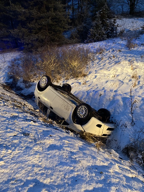 Hierbei überschlug sich der Pkw und bleib auf dem Dach liegen. Durch den Unfall öffnete sich zusätzlich der Tankdeckel, weshalb auch Kraftstoff austrat.