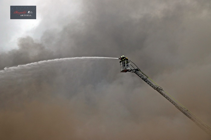 Im weiteren Verlauf dehnte sich der Brandabschnitt auf mehrere Gebäudeteile aus. Die Bedachung brannte durch. Dies hat zur Folge, dass umfangreiche Nachalarmierungen anliefen. Die einzige Möglichkeit war Widerstandslinien mit einem massiven Löschwasser- und Kräfteansatz zu realisieren. Ein Gebäudeabschnitt sowie ein angrenzendes Wohnhaus konnten gehalten werden.