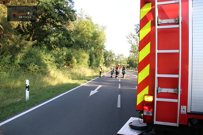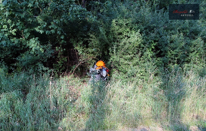Dieser hatte bereits seinen Abbiegevorgang beendet, so die Polizei, als er im Augenwinkel den Sturz des Motorradfahrers bemerkte. Zu einer Berührung mit dem Traktor ist es augenscheinlich nicht gekommen. Bei dem Sturz verlor der 47 Jährige seinen Helm und blieb auf der Straße liegen, Seine Maschine rollte etwa 50 Meter weiter ins Gebüsch.