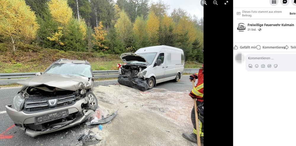 Am 03.11.2023 um 08:00 Uhr, verlor ein 44-jähriger Pkw-Fahrer aus dem Lkr. Wunsiedel, welcher von Hofstetten kommend auf der St2665 fuhr, die Kontrolle über sein Fahrzeug, welches sich querstellte und anschließend in den Gegenverkehr rutschte.