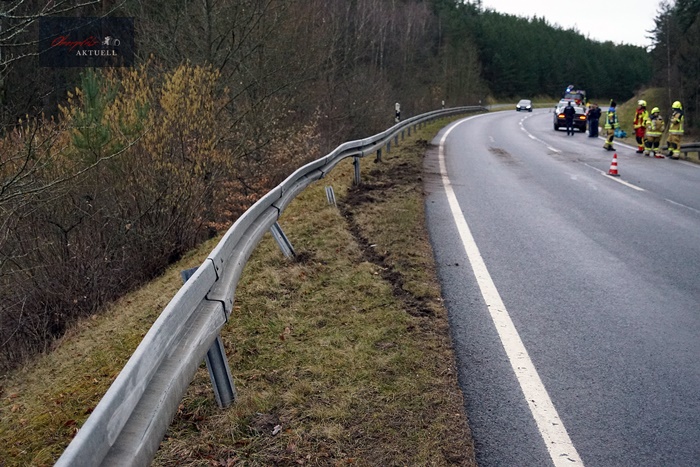 Ein 24-jähriger aus dem Landkreis Neustadt a. d. Waldnaab befuhr mit seinem Dodge Challenger die B299 von Grafenwöhr kommend in Richtung Vilseck. In einer Rechtskurve zwischen Hütten und Kaltenbrunn geriet er nach links von der Fahrbahn ab und krachte in die dortige Leitplanke. Beim Gegenlenken kam er wieder zurück auf seine Fahrbahn und streifte mit dem hinteren Teil seines Pkws die rechte Leitplanke.
