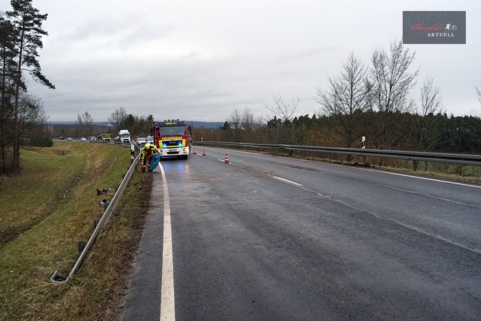 Der Fahrer wurde vom Rettungsdienst versorgt, blieb aber augenscheinlich unverletzt. Sein Fahrzeug erlitt einen geschätzten Sachschaden von etwa 15 000 Euro und musste abgeschleppt werden. Auch den Schaden an der Leitplanke beziffert die Polizei aus Eschenbach auf etwa 1500 Euro.